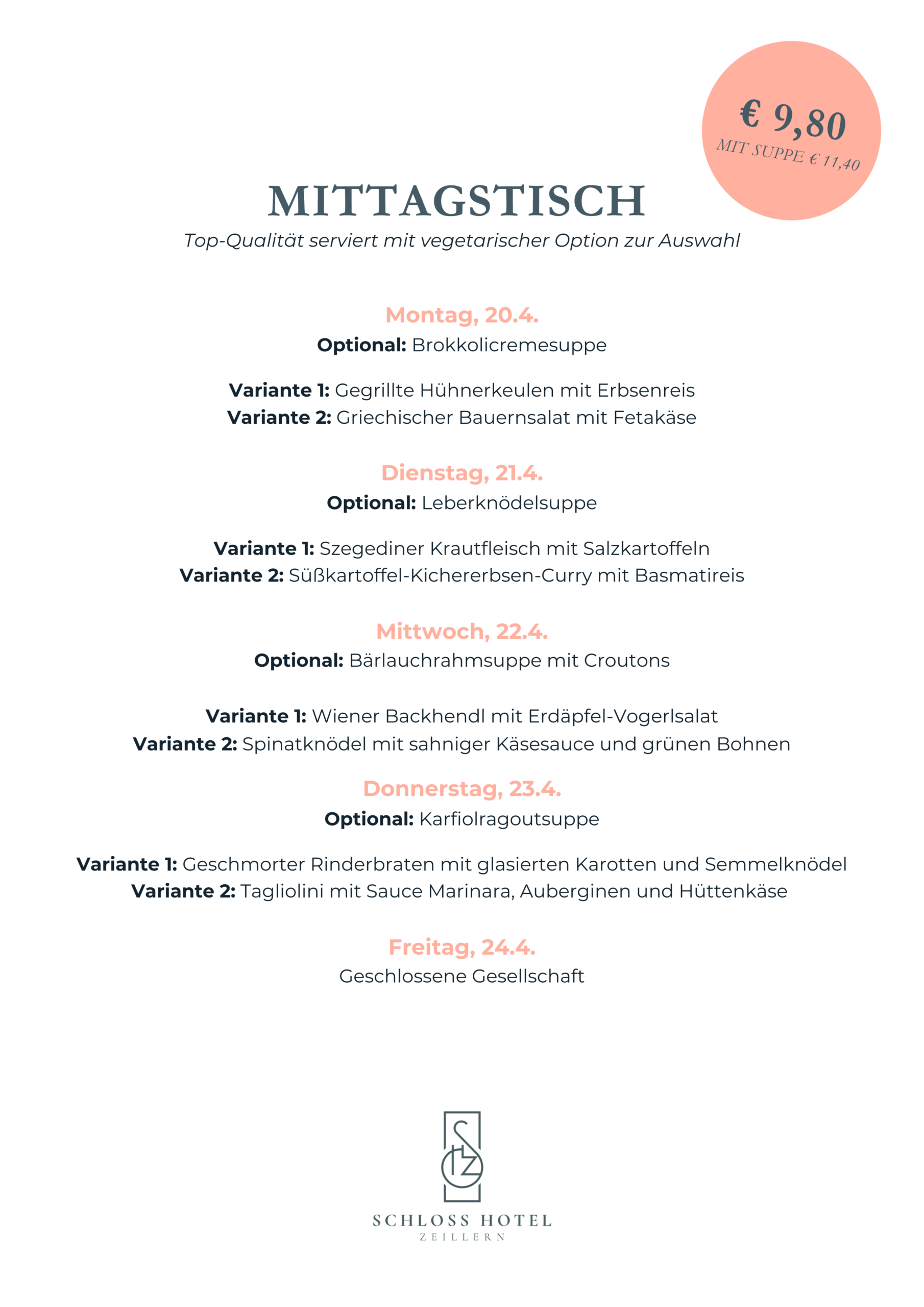 Mittagstisch: € 9,80